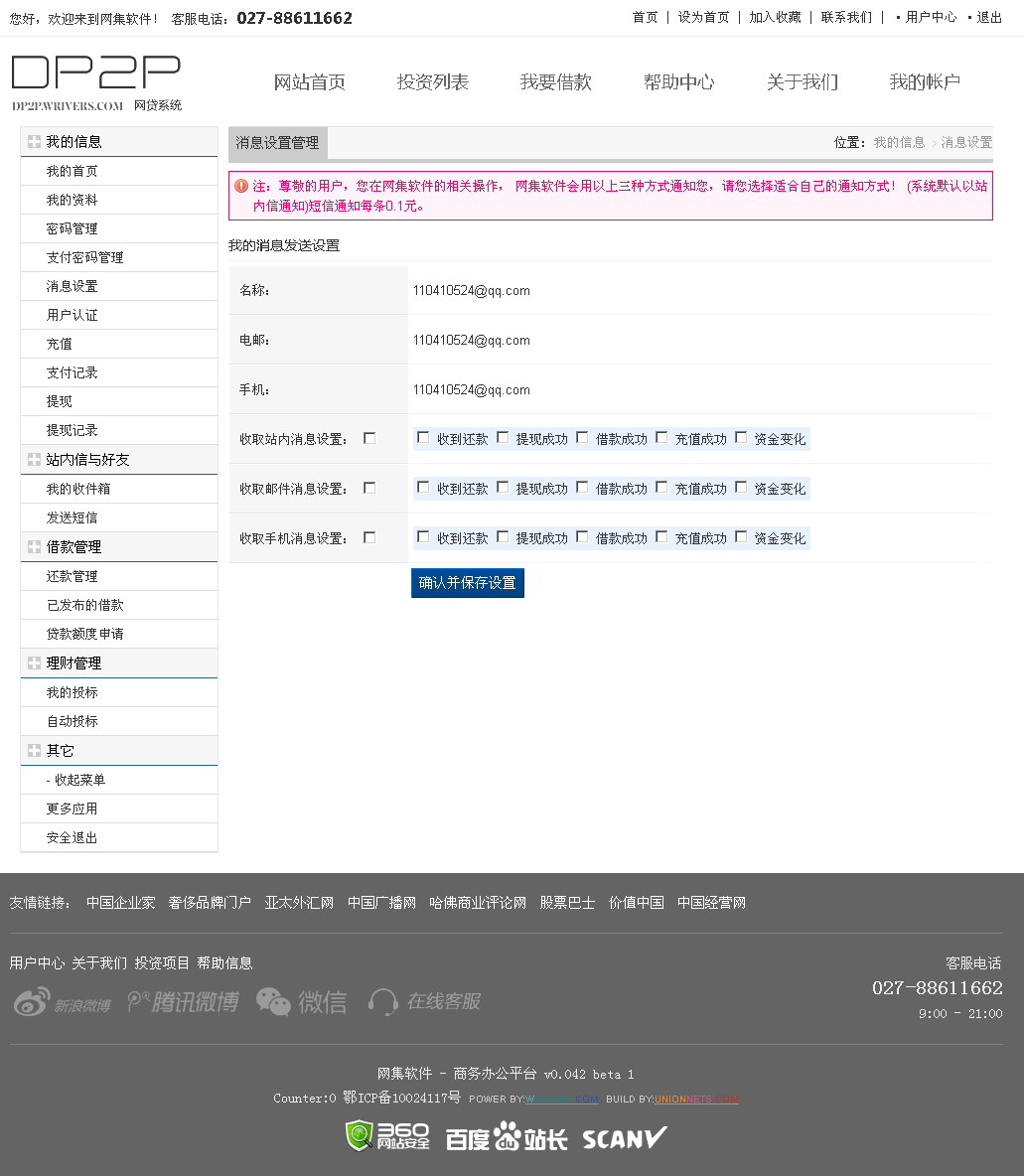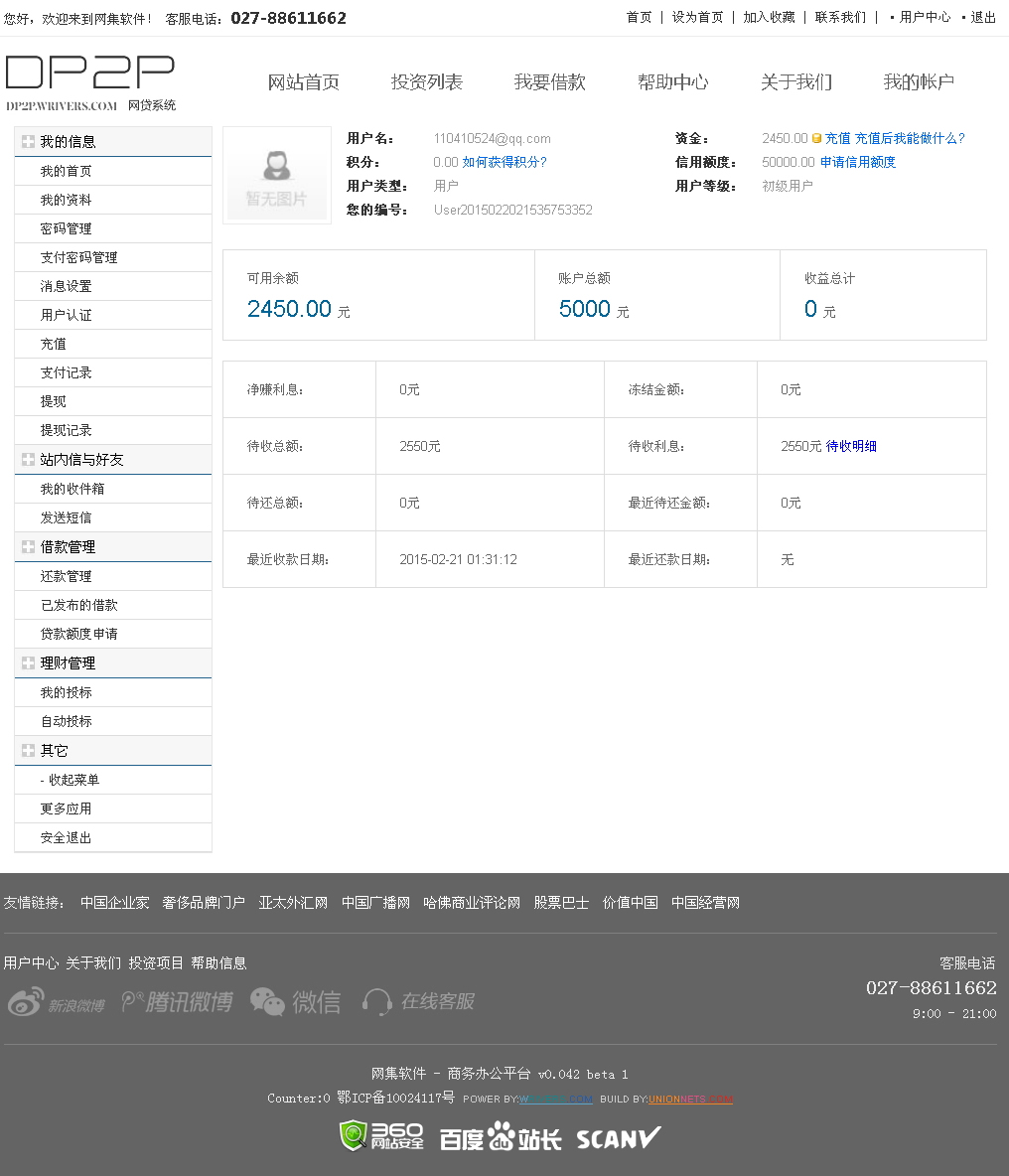 | 在线留言或咨询 | 投资人或其它用户向借款人或系统管理员的提问或留言、咨询 |