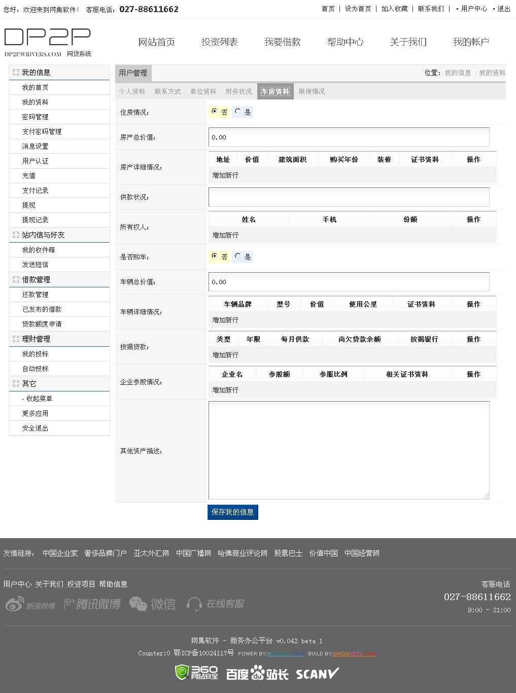 | 投资项目投资 | 单次可最高投资额、最低可投资额、单次第增额、投资合同、投资密码、投资时需支付密码;项目投资验证、项目投资资金锁定等 |