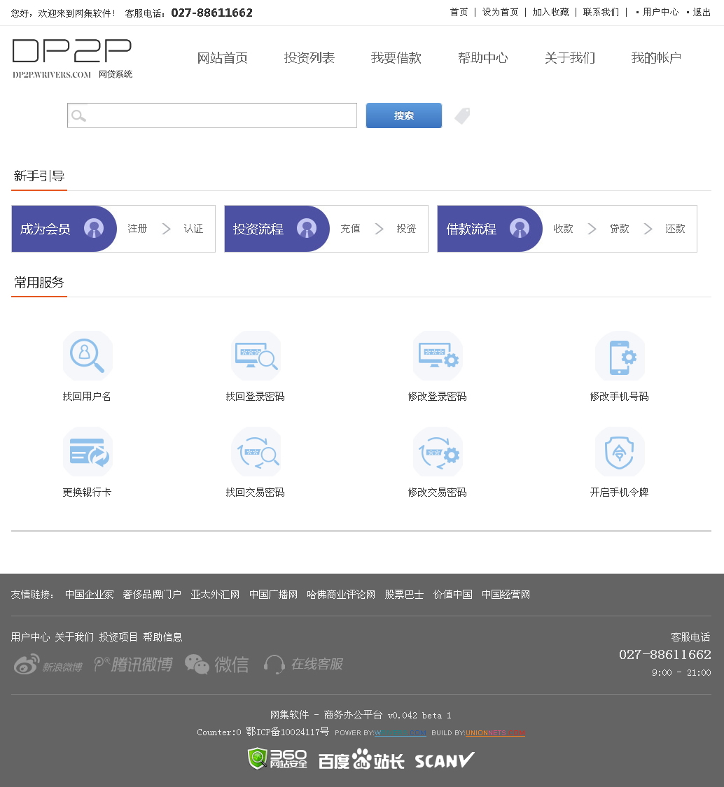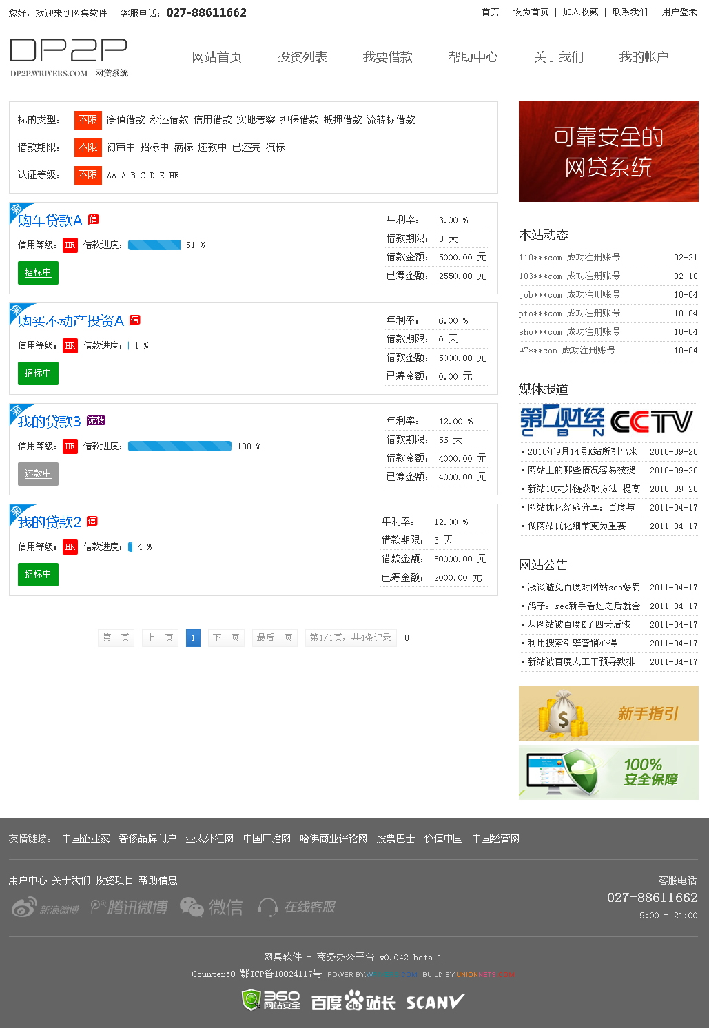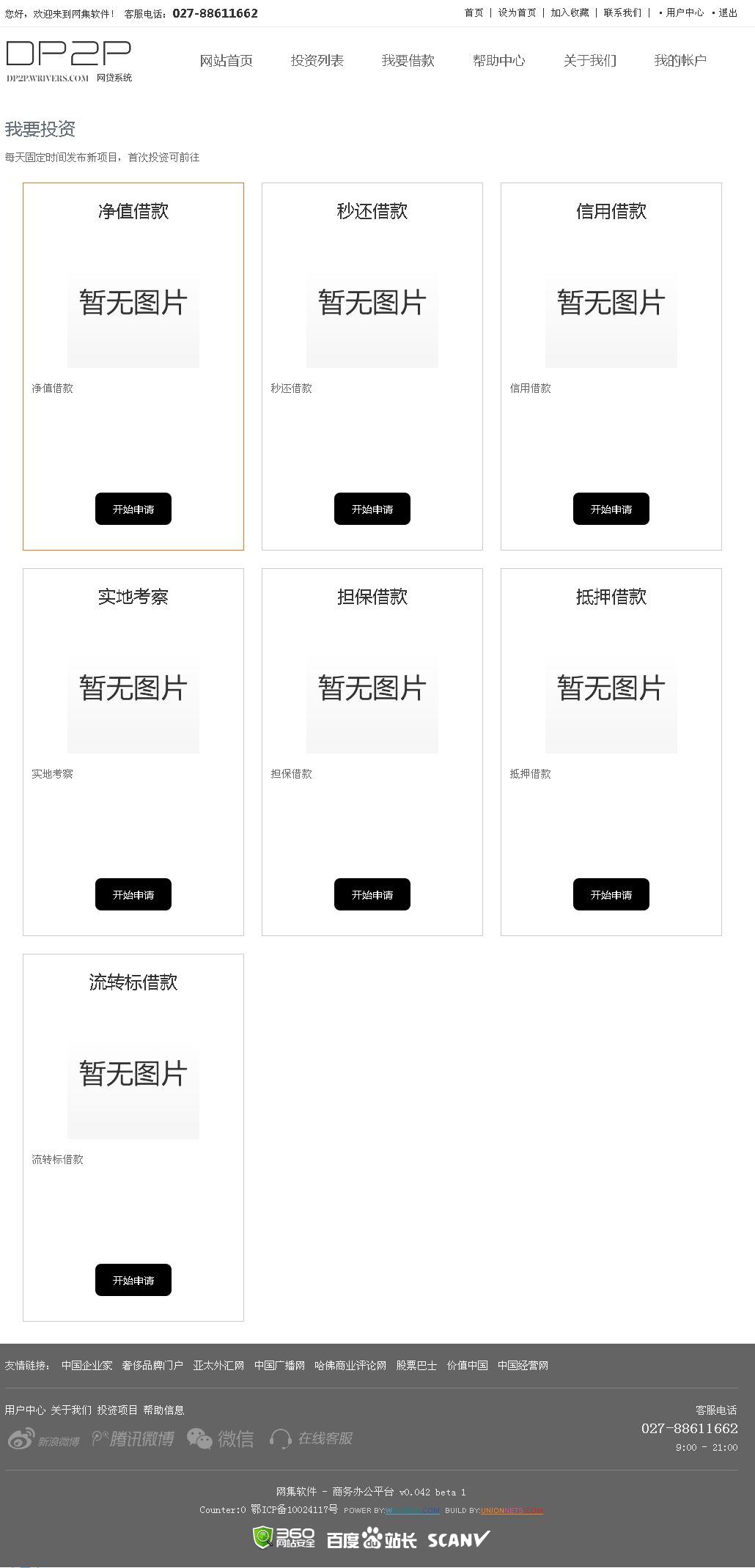 | 投资项目情况展示 | 投资项目详细情况的展示:项目名称、项目信用等级、项目状态、项目标的总额、项目年利率、项目进度等等 |