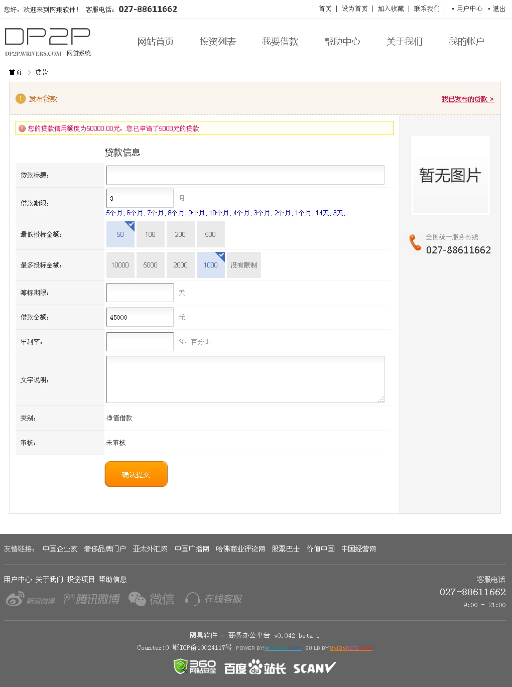 | 已发布的借款 | 当前用户已发布的借款记录 |